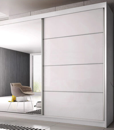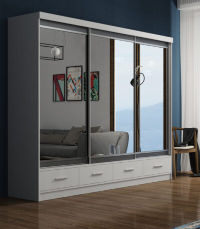 Dimensjoner på garderoben med finish: H: 215cm B: 211cm D: 65cm.