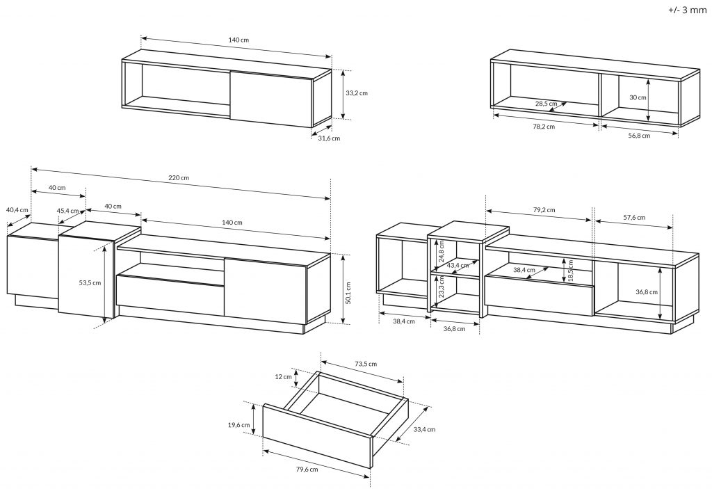Mål: H: 201cm B: 220-307cm D: 37cm