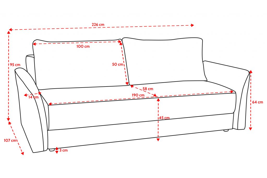 Mål: H: 95cm B: 226cm D: 107cm