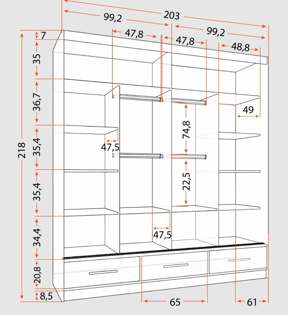 Mål: H: 207cm B: 100cm D: 61cm