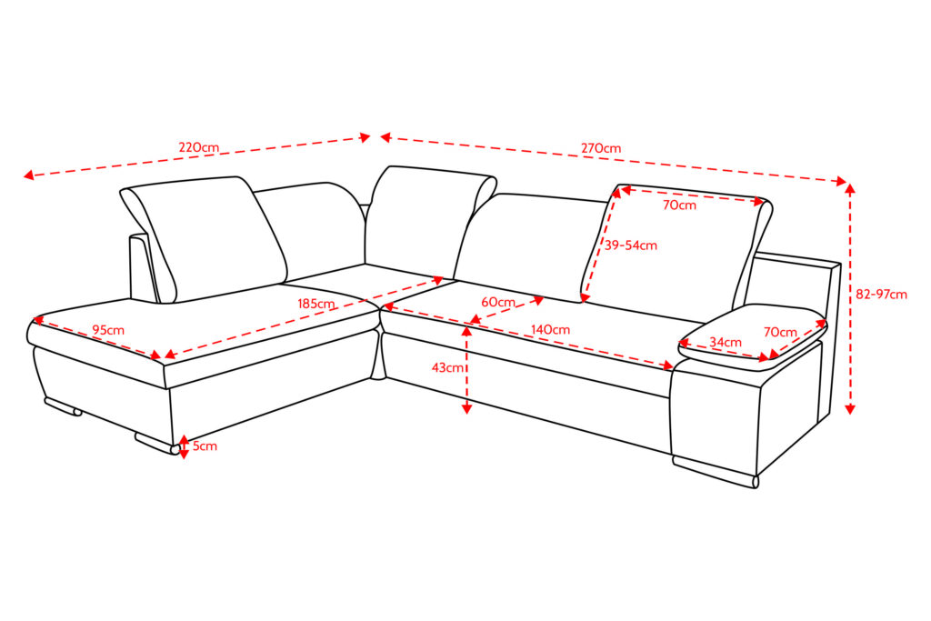 Mål: H: 82-97cm B: 270cm D: 220cm