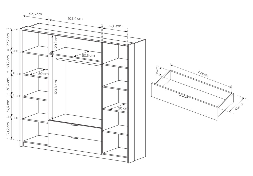 Mål: H: 200cm B: 101cm D: 51cm