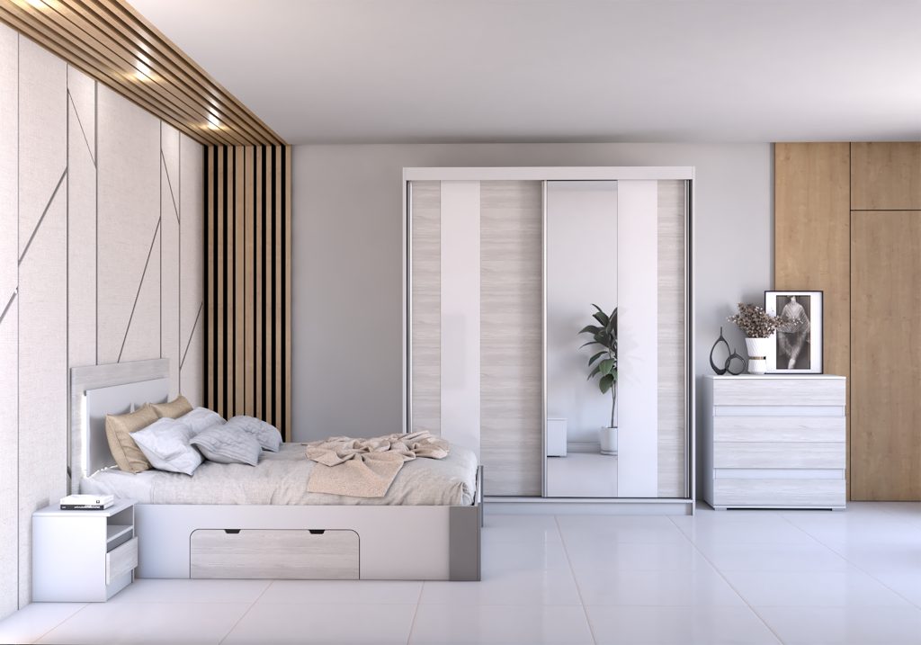 ALBA-250 garderobe med speil (hvit)
