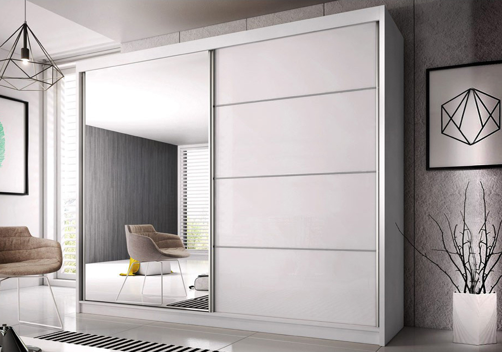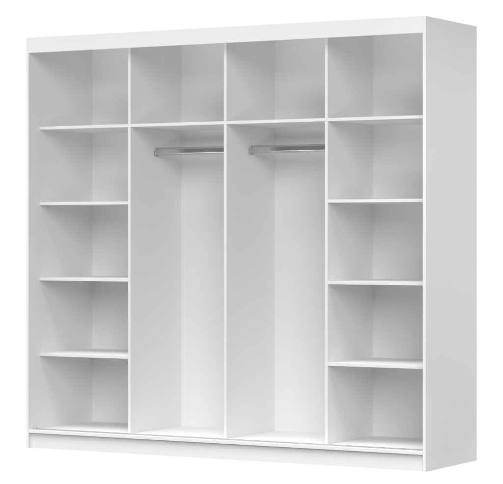 Garderobemål med finish: høyde - 215cm; bredde - 231,5 cm; dybde - 65 cm