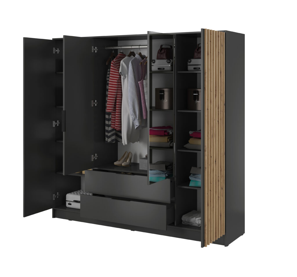 NELLY 4D-L garderobeskap med speil (Graphite)