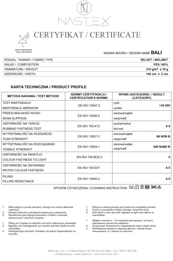 Martindale test – ≥30 000 sykluser