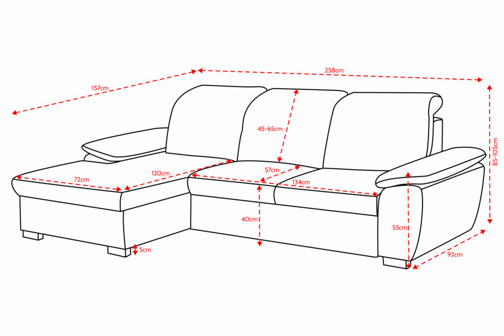 Mål: H: 85-105cm B: 258cm D: 157cm