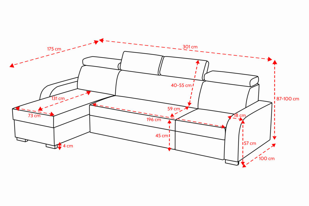 Mål: H: 87-100cm B: 301cm D: 175cm