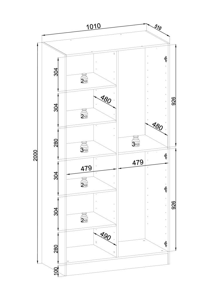 Mål: H: 200cm B: 101cm D: 51cm
