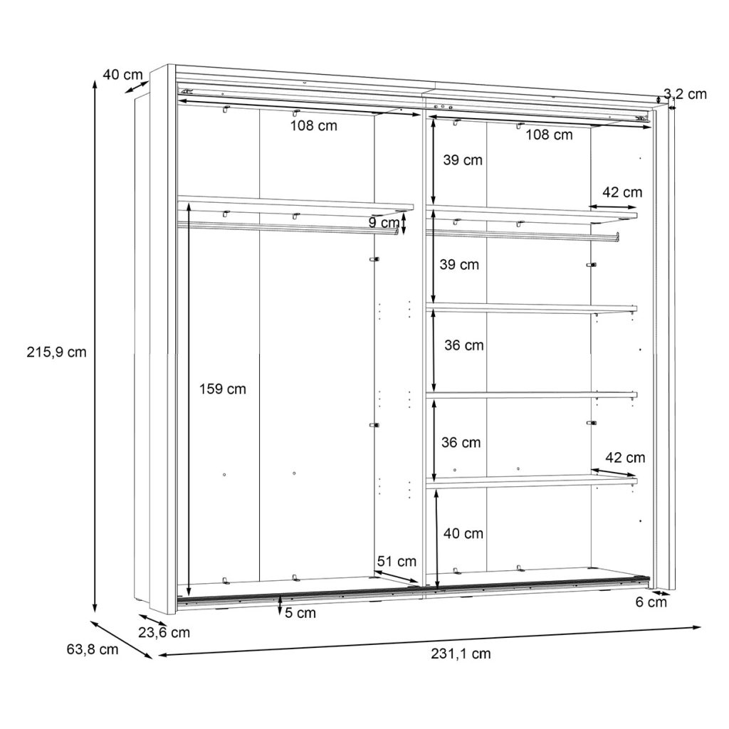 Bredde – 231 cm